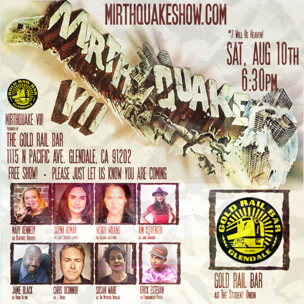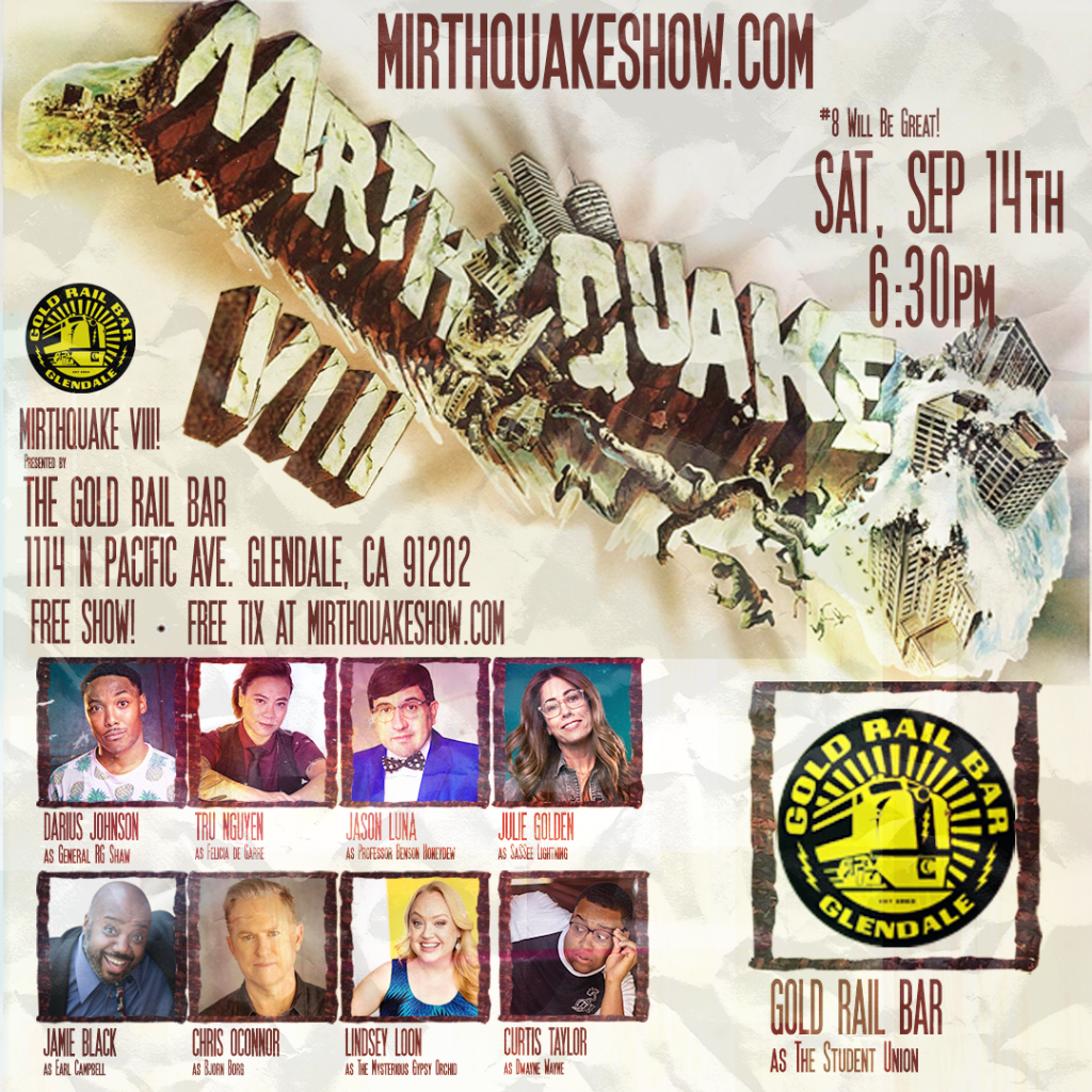 Mirthuake VIII will be great. Or at least not hell. Probably. Our September show has an amazing line up of comedians who perform all over the LA and the other less significant parts of the country where they don’t have quakes.
